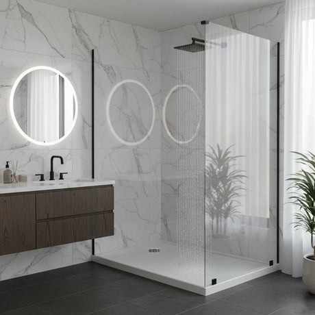 Shower Tray Right Hand - Double threshold - Acrylic and fiberglass - 48 x 36 x 5.5