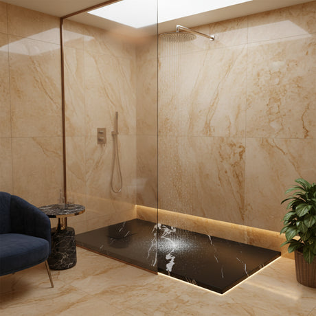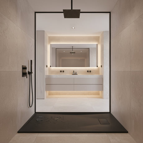 ADA SMC / Solid Surface Shower Base Tray 60" × 32" - Antiskid, 304 S.S Drain Cover & Drainer