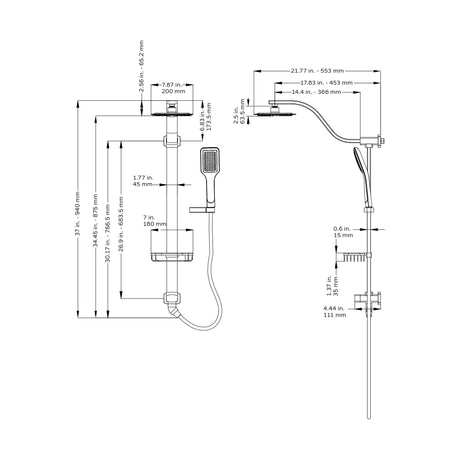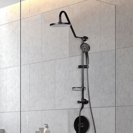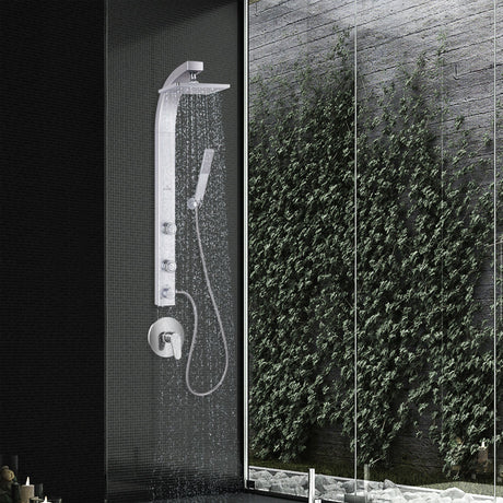 Aluminum Shower System Bonzai W/ 8"Rain Showerhead - Surface Mounted - Multi Function Handshower