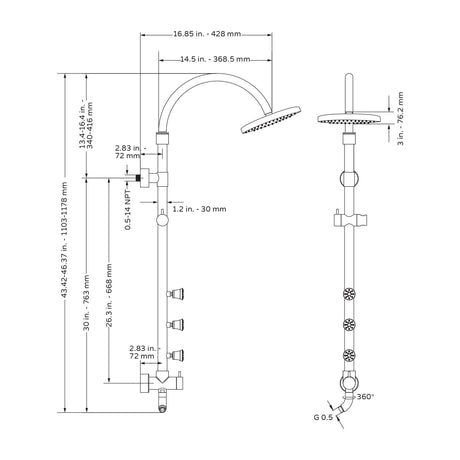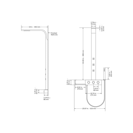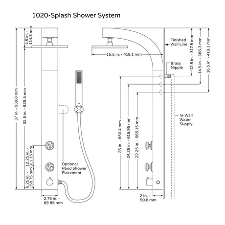 34.5"H x 1.5"W x 22"D Shower System - SeaBreeze Shower System