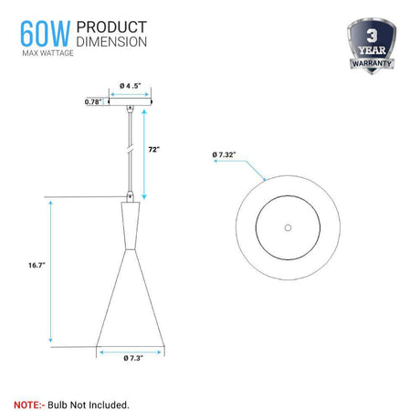 Matte Black Pendant Light Fixture, Subulate Style, E26 Base, Steel Body, UL Listed