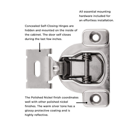 Concealed Hinge Full Overlay Frameless Self-Close in Polished Nickel - Hickory Hardware