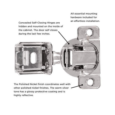 - Up to 33% offHinge Concealed Full Inset Frameless Self-Close in Polished Nickel - Hickory Hardware From $13.50$20.25Unit price /UnavailableIn stock (212 units)