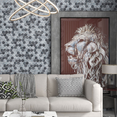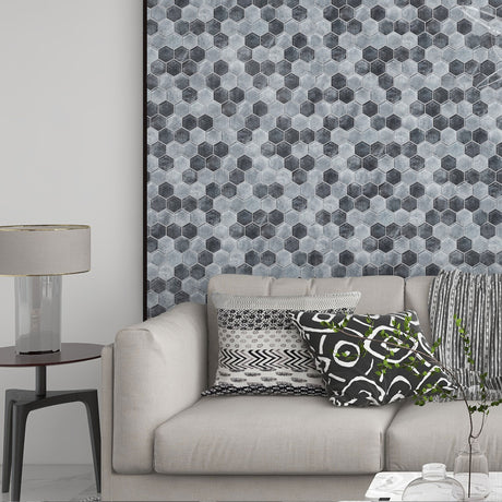 15" X 12" X 10 mm Thasos White Enlongated Hex With Light Gray And Carrara White Border