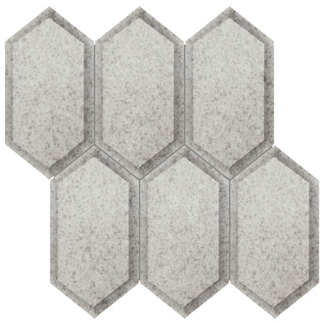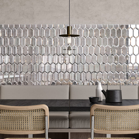 Obsidian Glossy Glass Antique Silver Beveled Hexagon Mosaic