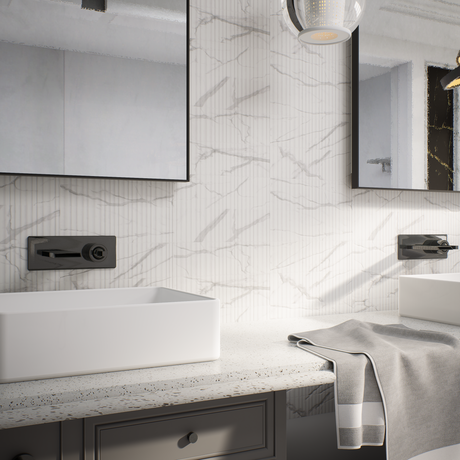 12 X 36 In Curva Raffino Statuario Matte Rectified Glazed Ceramic