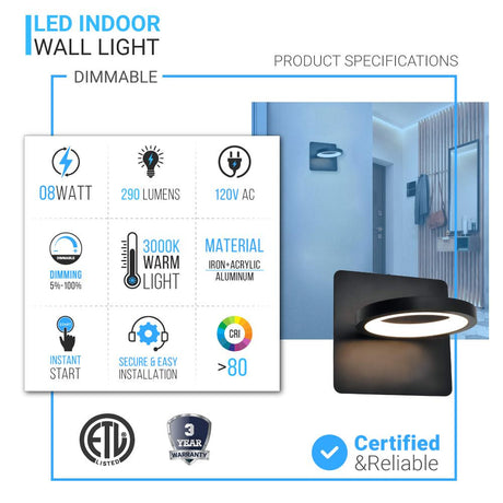 LED Wall Sconce Light Fixture, Dimmable, 3000K (Warm White) (W2281-25)
