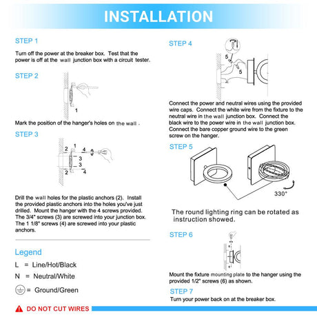 LED Wall Sconce Light Fixture, Dimmable, 3000K (Warm White) (W706252-25)