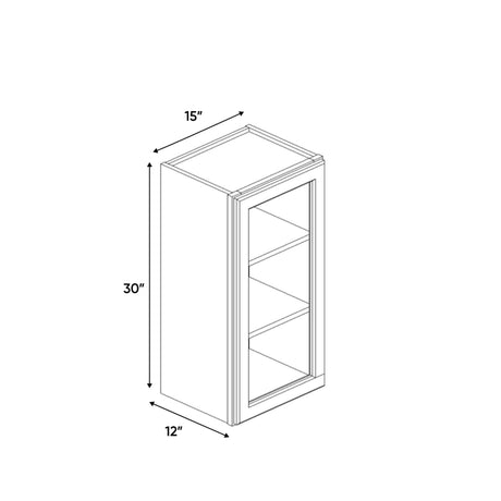 Avalon Ashen - 15 Inch Single Glass Door Wall Cabinet - 15" Width x 30" Height x 12" Depth