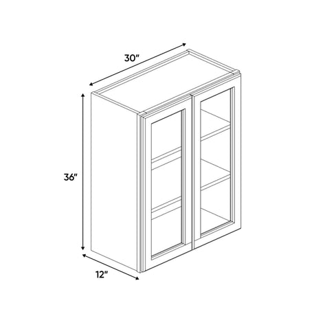 Avalon Ashen - 30 Inch Double Glass Door Wall Cabinet - 30" Width x 36" Height x 12" Depth