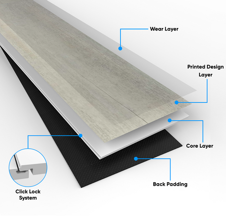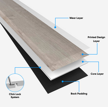SPC Vinyl Flooring, Champaign Oak,7" x 48" x 5.5mm, 20 mil Wear Layer