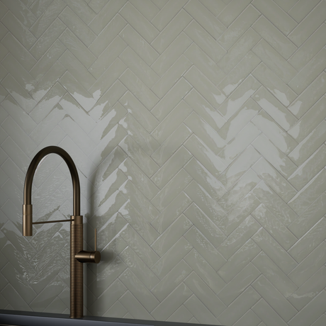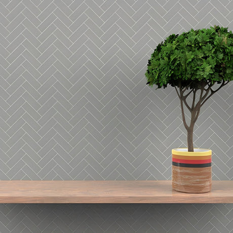 2 X 6 In Herringbone Soho Gallery Grey Glossy Glazed Porcelain Mosaic