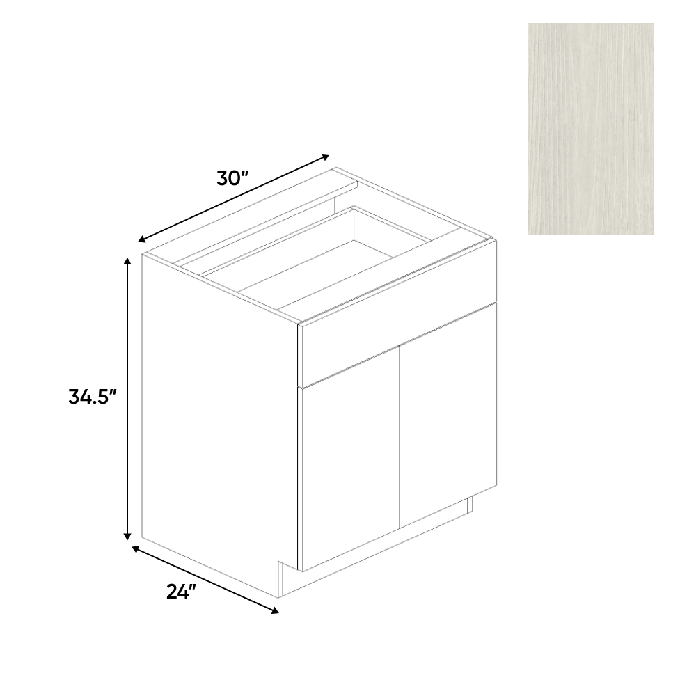 RTA - White Frozen Wood Textured - Double Door Base Cabinet - 30"W x 34.5"H x 24"D - Frameless Cabinet
