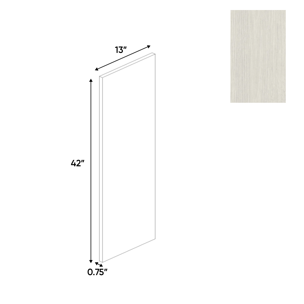 RTA - White Frozen Wood Textured - Finished End Wall Panel - 13"W x 42"H x 0.75"D - Frameless Cabinet