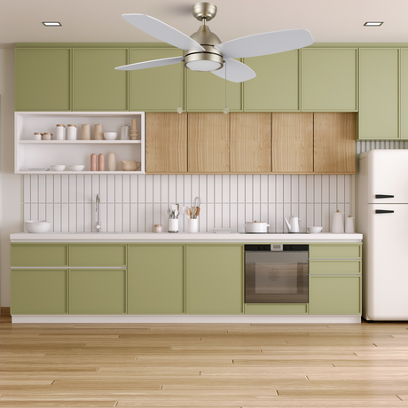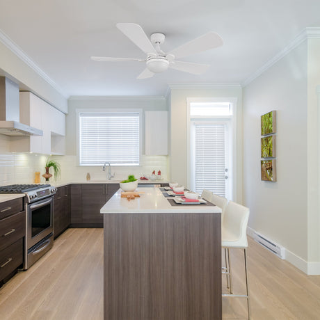 SANTANA 52 inch 5-Blade Flush Mount Ceiling Fan with LED Light & Wall Control