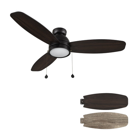 GREENWOOD 52" 3-Blade Flush Mount Ceiling Fan with LED Light & Pull Chain