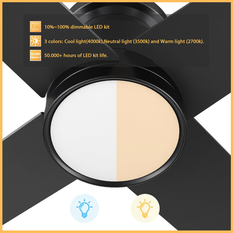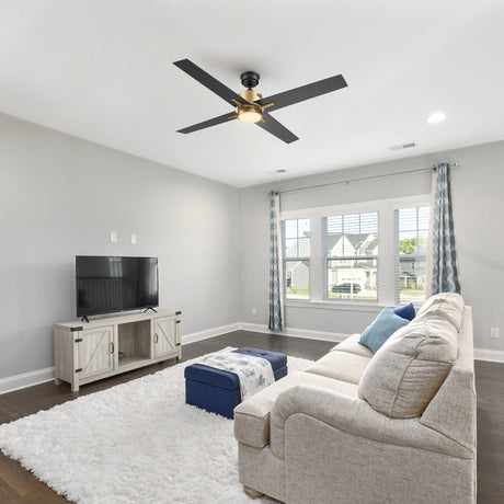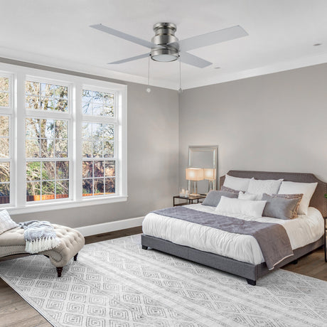 SANTANA 52 inch 4-Blade Flush Mount Ceiling Fan with LED Light & Remote