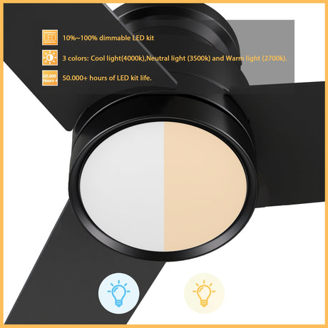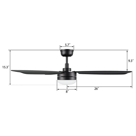 VARA 52 In 3 Blade Smart Ceiling Fan With Integrated LED Lights With Remote