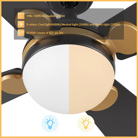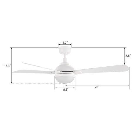 ZEPHYR 52 In 4 Blade Smart Ceiling Fan With Integrated LED Lights With Remote Control