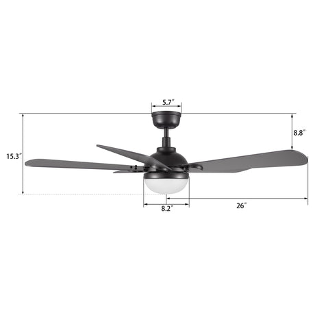 ZEPHYR 52 In 5 Blade Smart Ceiling Fan With Integrated LED Lights With Remote Control