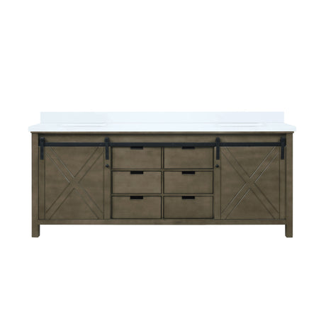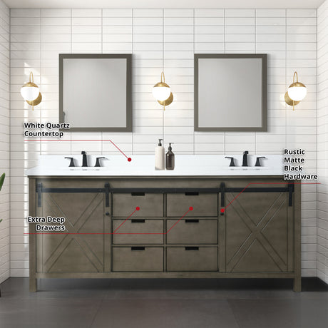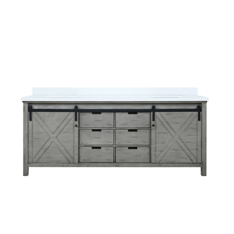 Marsyas 80 in. Freestanding Bathroom Vanity with White Quartz top, White Square Sink