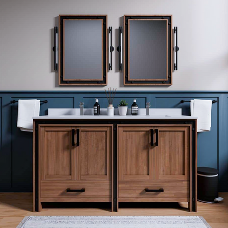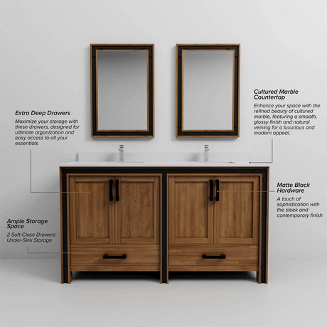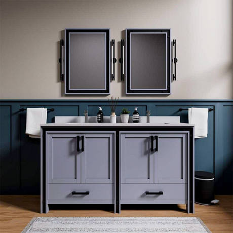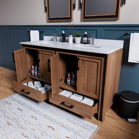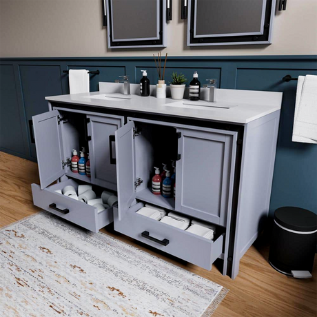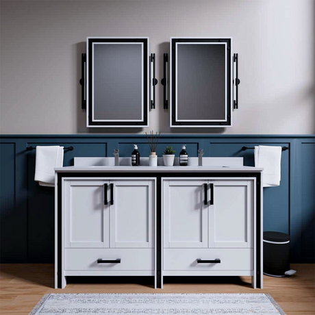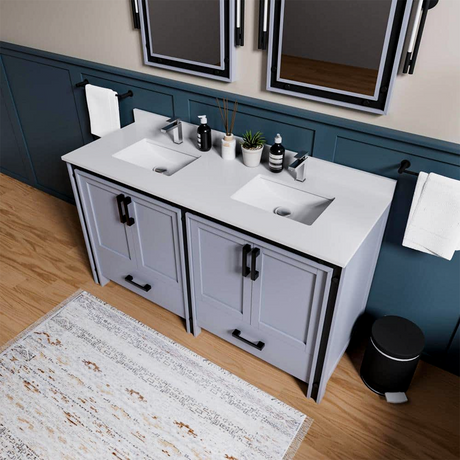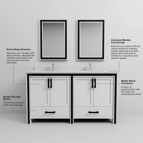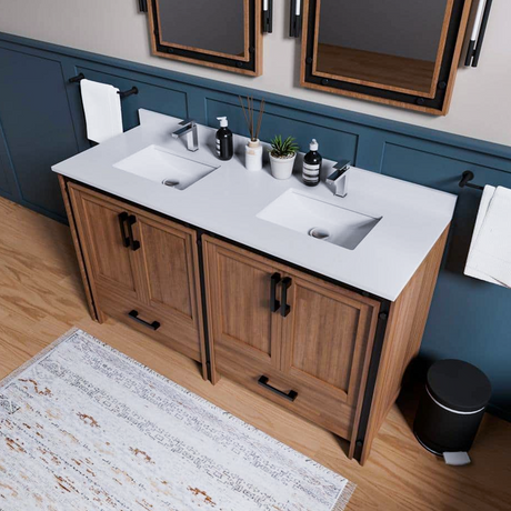 Jacques 60 in. Freestanding Bathroom Vanity with White Quartz Top, White Square Sink