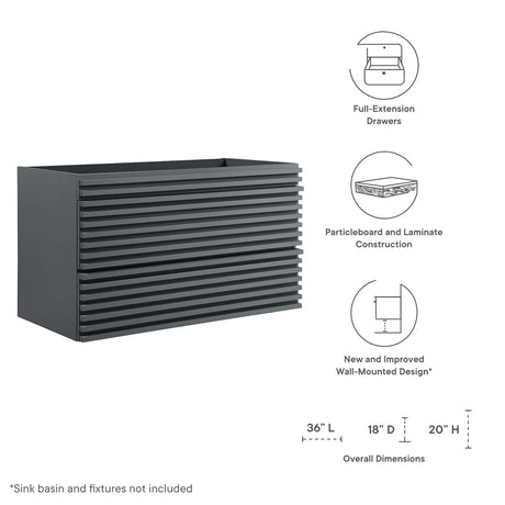 Render 36" Wall-Mount Bathroom Vanity Cabinet (Sink Basin Not Included)