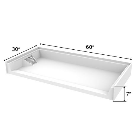 60 in. L x 30 in. W Acrylic Shower Base With Drain, Single Threshold Shower Pan - PRO