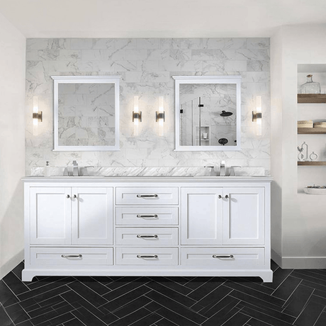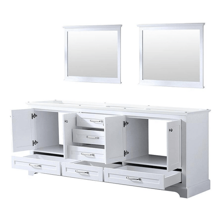 Dukes 84 In. White Freestanding Double Bathroom Vanity Cabinet Without Top & 34 In. Mirrors