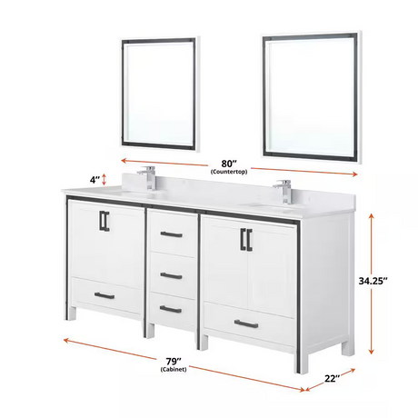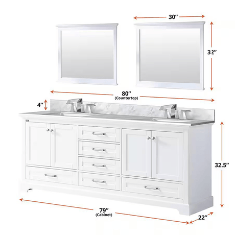 Dukes 80 In. White Freestanding Double Bathroom Vanity Cabinet Without Top & 30 In. Mirrors