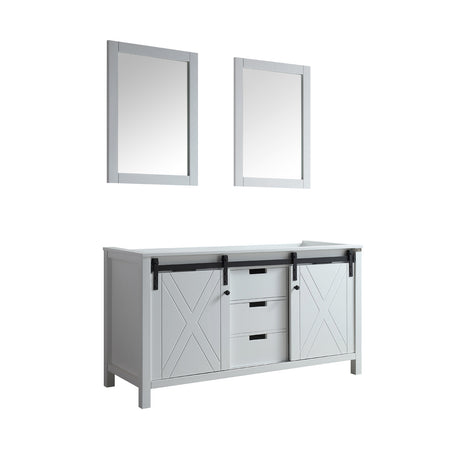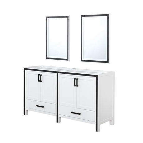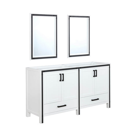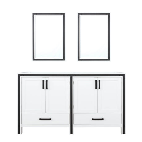 Ziva 60" White Freestanding Bathroom Vanity Cabinet Without Top & 22" Mirrors