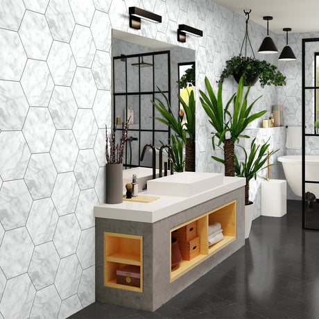 6 In Hexagon La Marca Carrara Honed Glazed Porcelain Mosaic Tile
