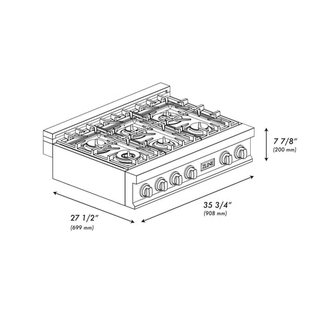 ZLINE 36" Gas Cooktop with 6 Gas Brass Burners (RC-BR-36)