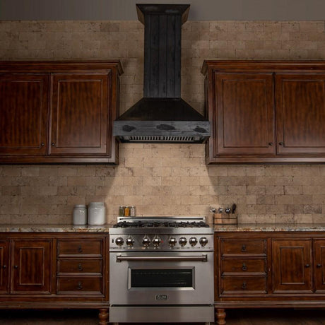 ZLINE 36 in. Shiplap Wooden Wall Mount Range Hood in Rustic Dark Finish - Includes Motor (349DD-36)