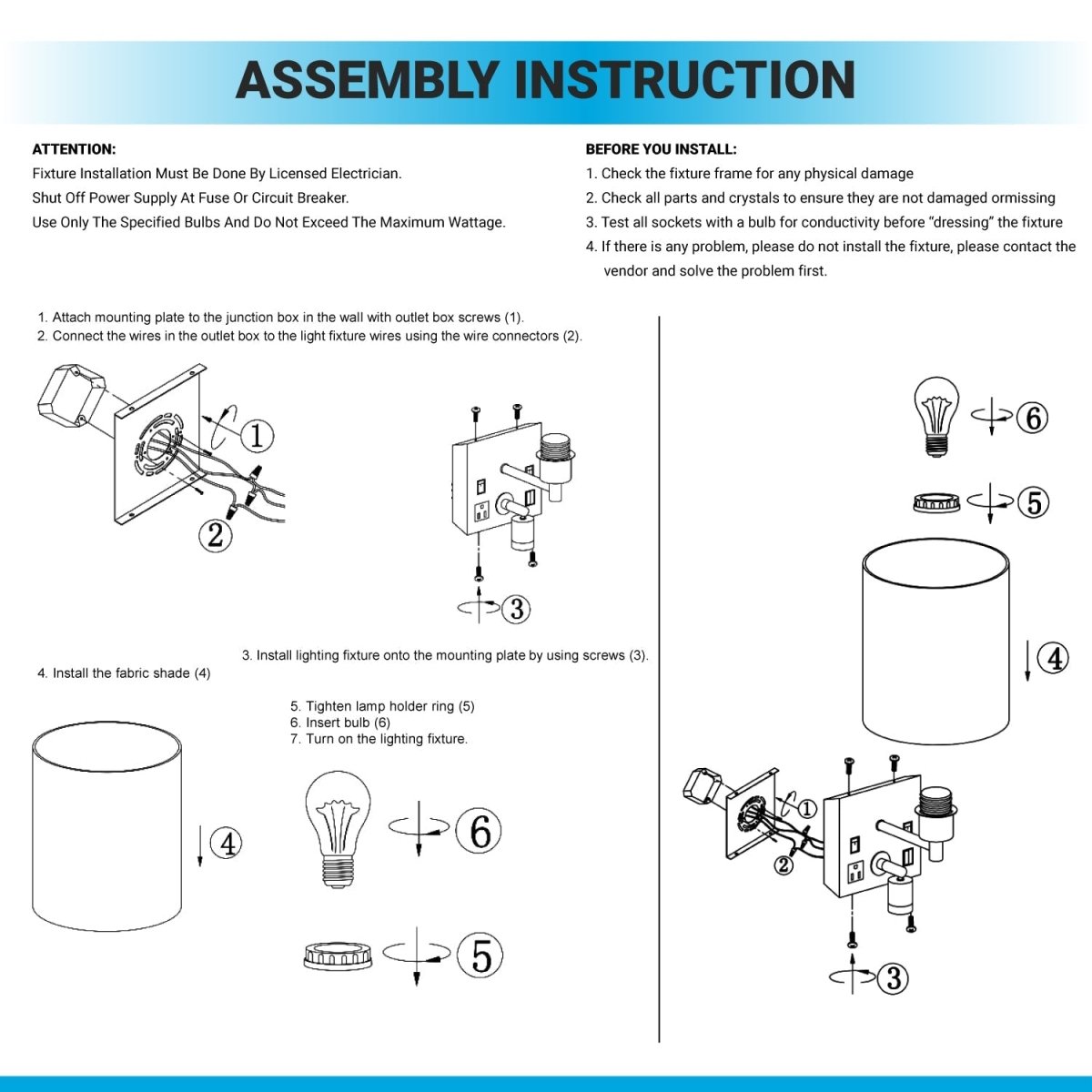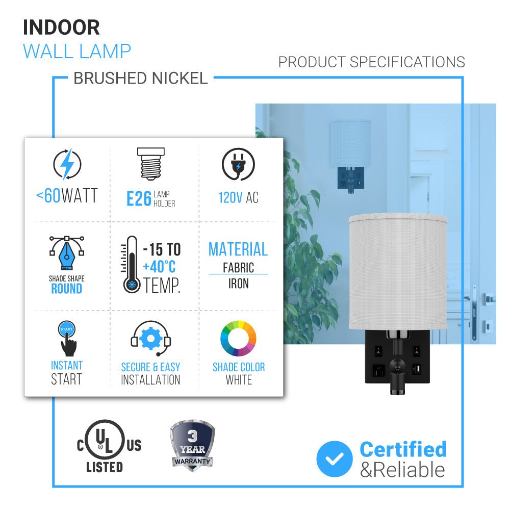 Every modern home and office deserves a minimalistic wall lamp fixture like this one. Featuring a simple-yet-elegant cylindrical design, this wall lamp highlights a sturdy metal body and hardbacked fabric shade. The W8"*H14"*E10" lamp is UL certified, which means that it is suitable for use on dry indoor occasions. The white fabric shade of this wall lamp softens the light coming from the bulb. Thus, providing an ambiance you'll love to see and experience! It is compatible with A19 style bulbs that offer an E26 base. Also, the lamp will need a 120V AC power supply and light bulb up to 60 watts. It comes with two rocker switches, one USB port, one type C, and one bulb holder. It will be best if you consider using an LED bulb with this wall light fixture. LEDs consume very little energy peruse and are available in several color temperatures. Choosing an LED bulb that offers adequate color temperature and wattage will allow setting up the desired ambiance. If you think this wall lamp is going to enhance the looks of your living or workspace shop right away. If not, feel free to explore our collection to find the perfect match.