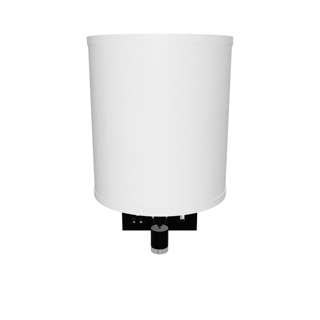 1-Light LED Wall Sconce With 1 USB, 2 Switch, 1 Outlet - Black Metal Finish W/ White Fabric Shade