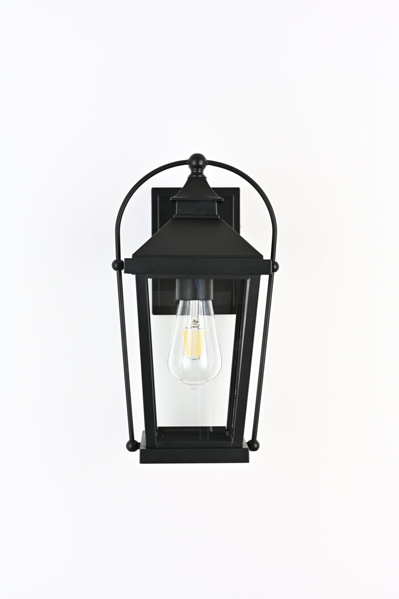 Outdoor Wall Light Fixture, E12 Base, 1X40W, Matte Black, Clear Glass Shade, BULB EXCLUDED