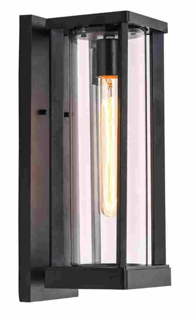 1 Light Outdoor Wall Sconce, Black, Clear Glass, E26 Base, 1X60W, Wall Light Fixtures