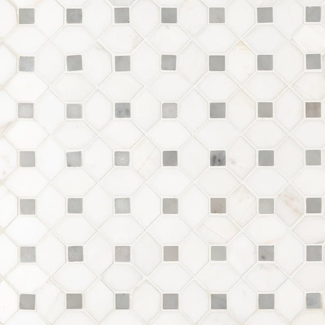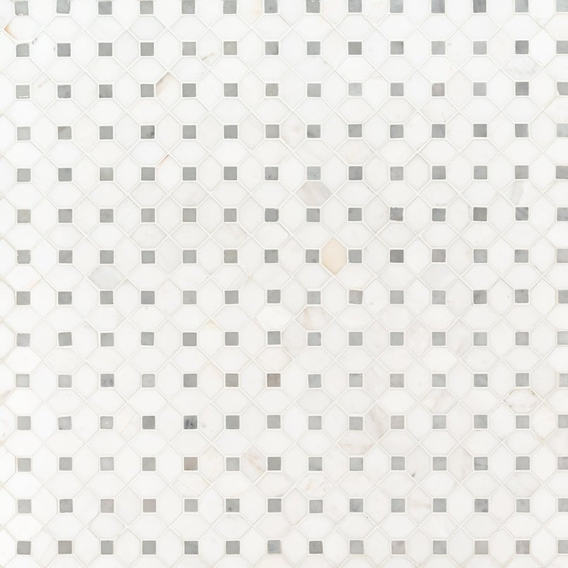 12" X 13" Bianco Dolomite Polished Dotty Pattern Mosaic Sheet (10.6SQ FT/CTN) - Case is backordered and will ship as soon as it is back in stock.