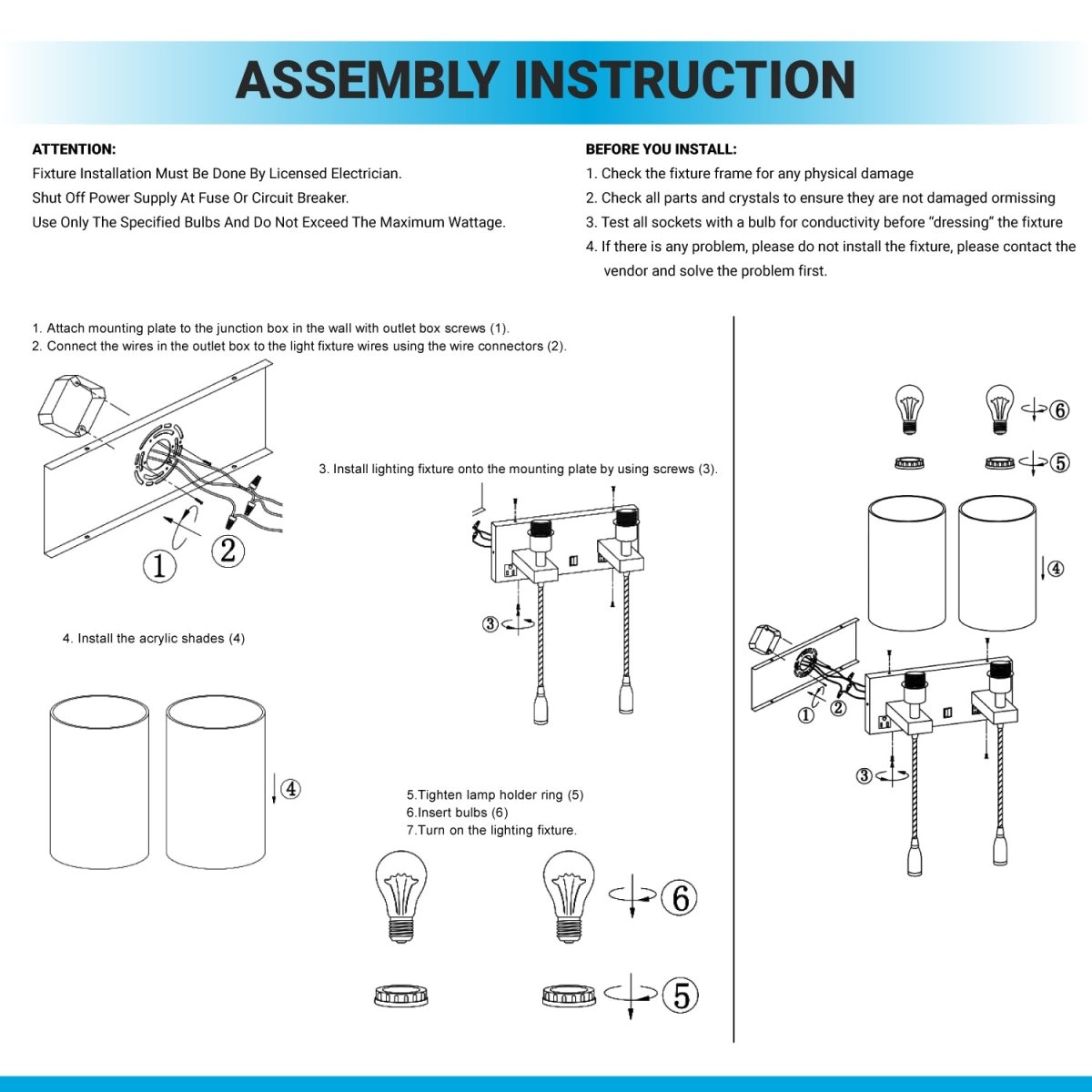 Wall Lamp With Acrylic Shade, Dimension: Overall size: W14"xH12"xE7.75" Shade size: W6, E26 2*40W, bulb excluded