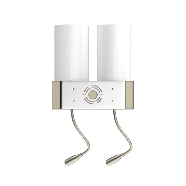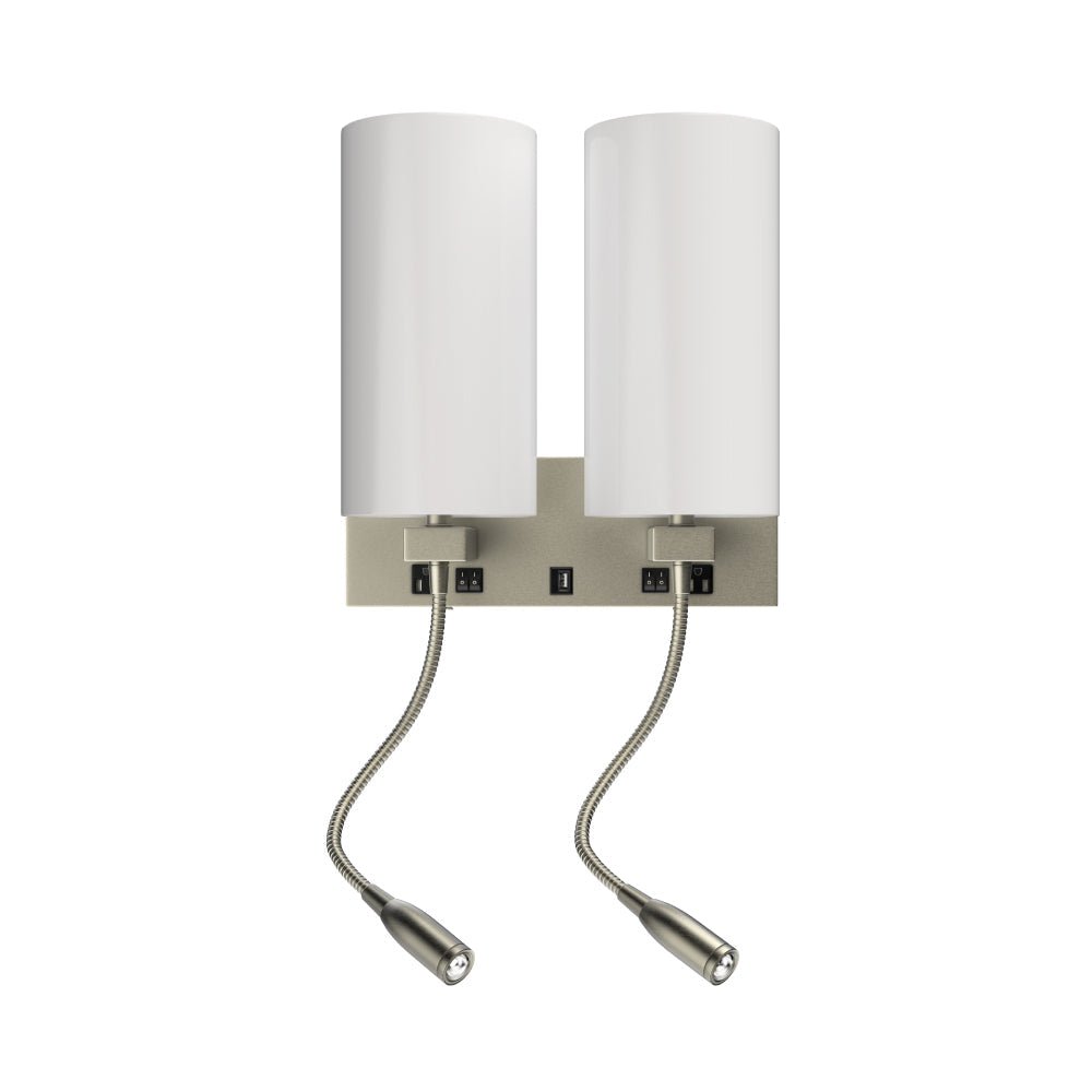 2-Light Acrylic Wall Sconce, Brushed Nickel Finish, With LED 2*1W+1 usb+2 switches+2 outlet, LED Acrylic Wall Light