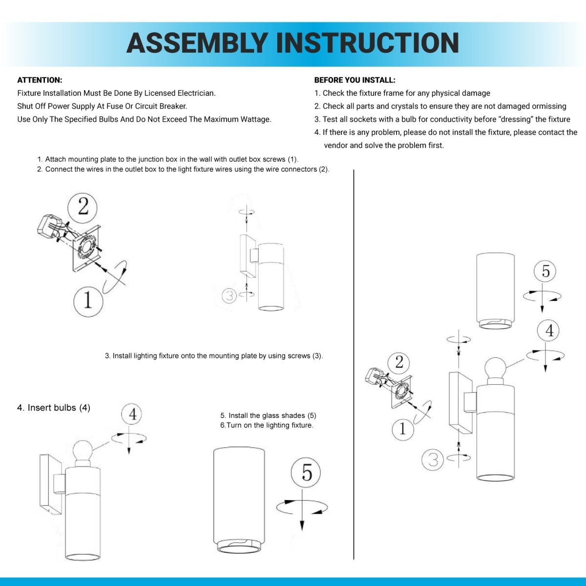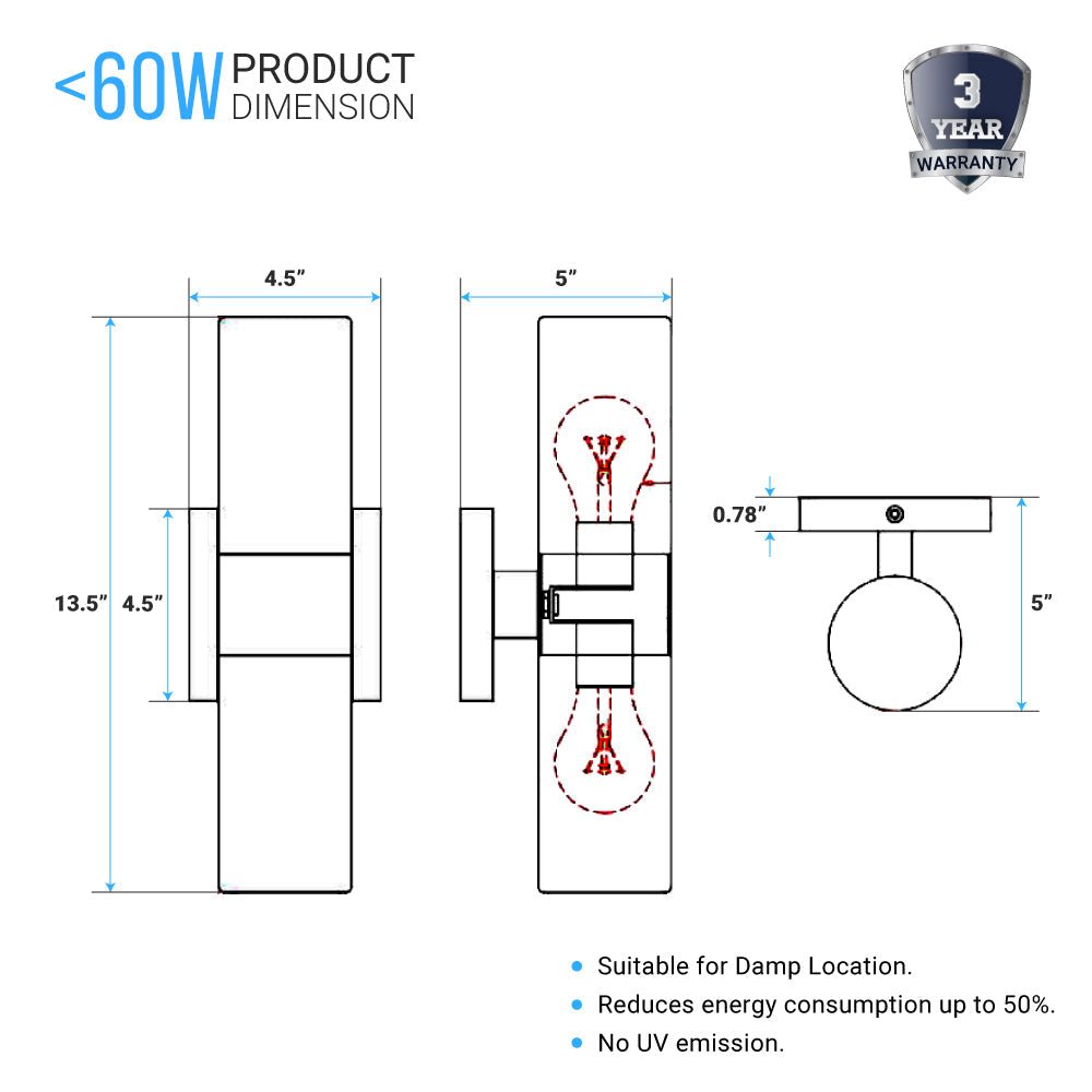 | Wattage: | 2 x 60W (Bulb Not Included) |