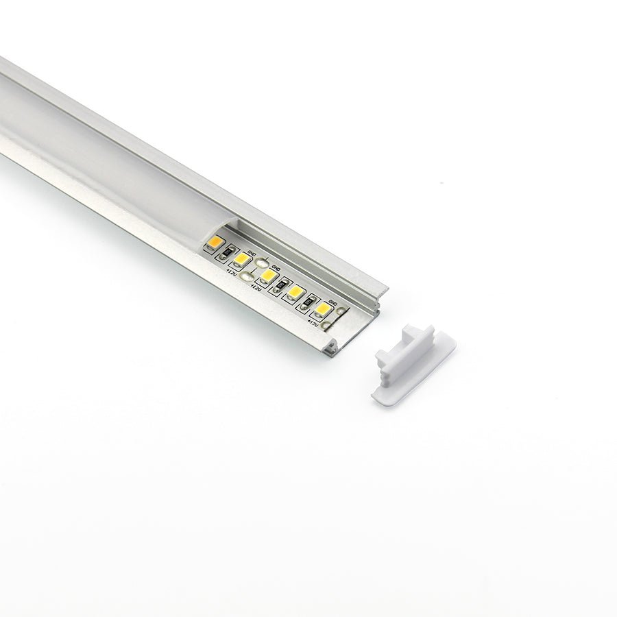 Aluminum profile / 39.4"(L) x 0.99"(W) x 0.28"(H) / PC diffused Cover, press down type / End cap with hole / End cap without hole /Metal mounting clips. This LED aluminum profile kit is great for LED strip lights. This low-profile surface-mount LED channel provides a professional mounting solution for flexible, rigid, or linear LED strip lights that measure up to 10 mm wide.