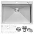 - Included in the box: Sink, cut-out template, mounting brackets, rinse grids (set of 2), 2 basket strainers