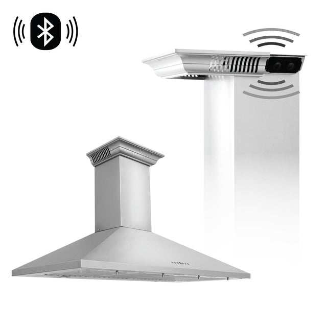30" ZLINE CrownSound™Ducted Vent Wall Mount Range Hood in Stainless Steel with Built-in Bluetooth Speakers (KL2CRN-BT-30)