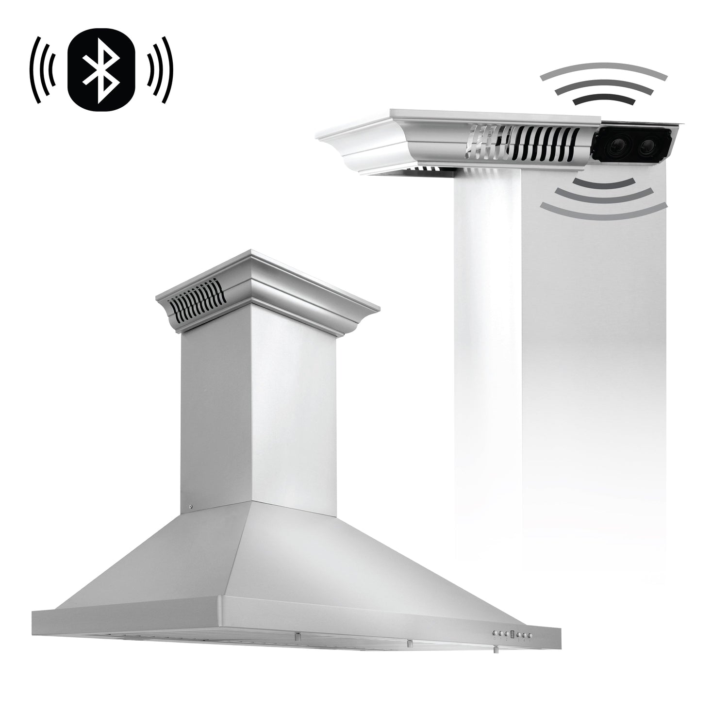 36" ZLINE CrownSound™Ducted Vent Wall Mount Range Hood in Stainless Steel with Built-in Bluetooth Speakers (KBCRN-BT-36)
