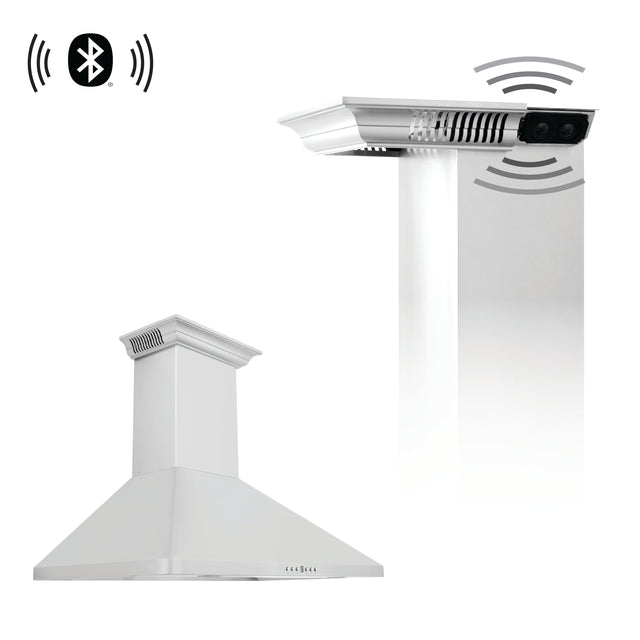 36" ZLINE CrownSound™Ducted Vent Wall Mount Range Hood in Stainless Steel with Built-in Bluetooth Speakers (KF1CRN-BT-36)