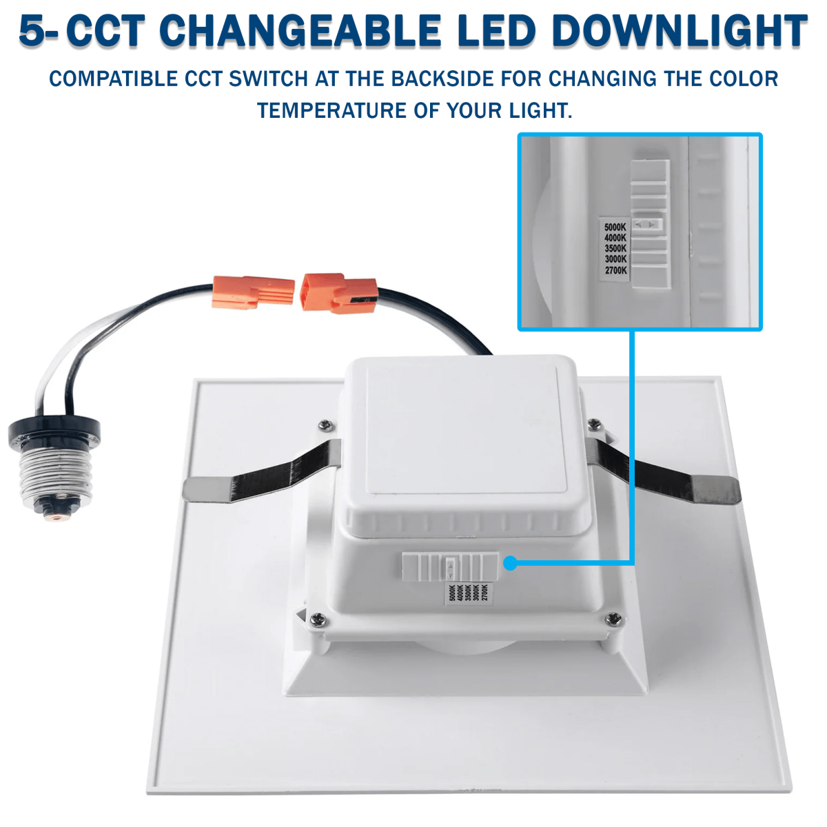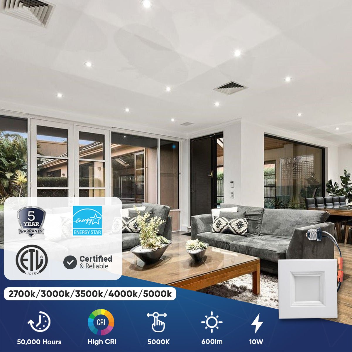 4" Dimmable LED Square Downlight - 600 Lumens - 10 Watt - 35W Equal - 2700K/3000K/3500K/4000K/5000K - Square Design - 5 Year Warranty