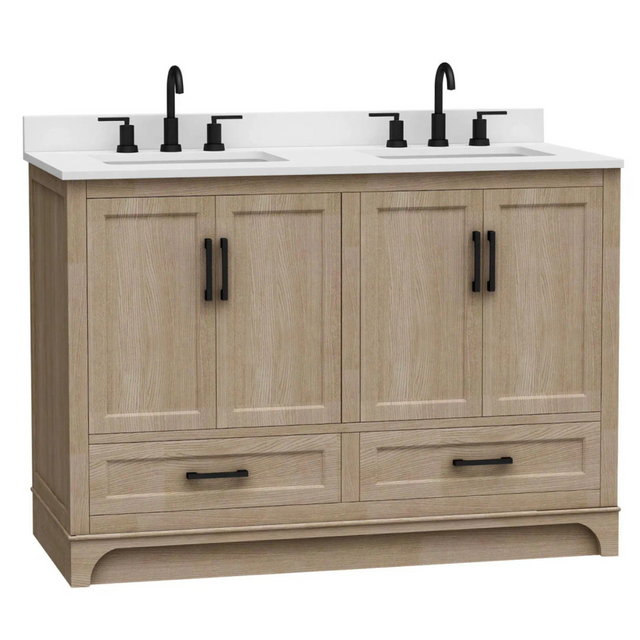 48" Retford Freestanding Solid Wood Bathroom Vanity With Carrara White Engineered Stone Sink Top & 4 In. Backsplash in Light wooden finish is backordered and will ship as soon as it is back in stock.