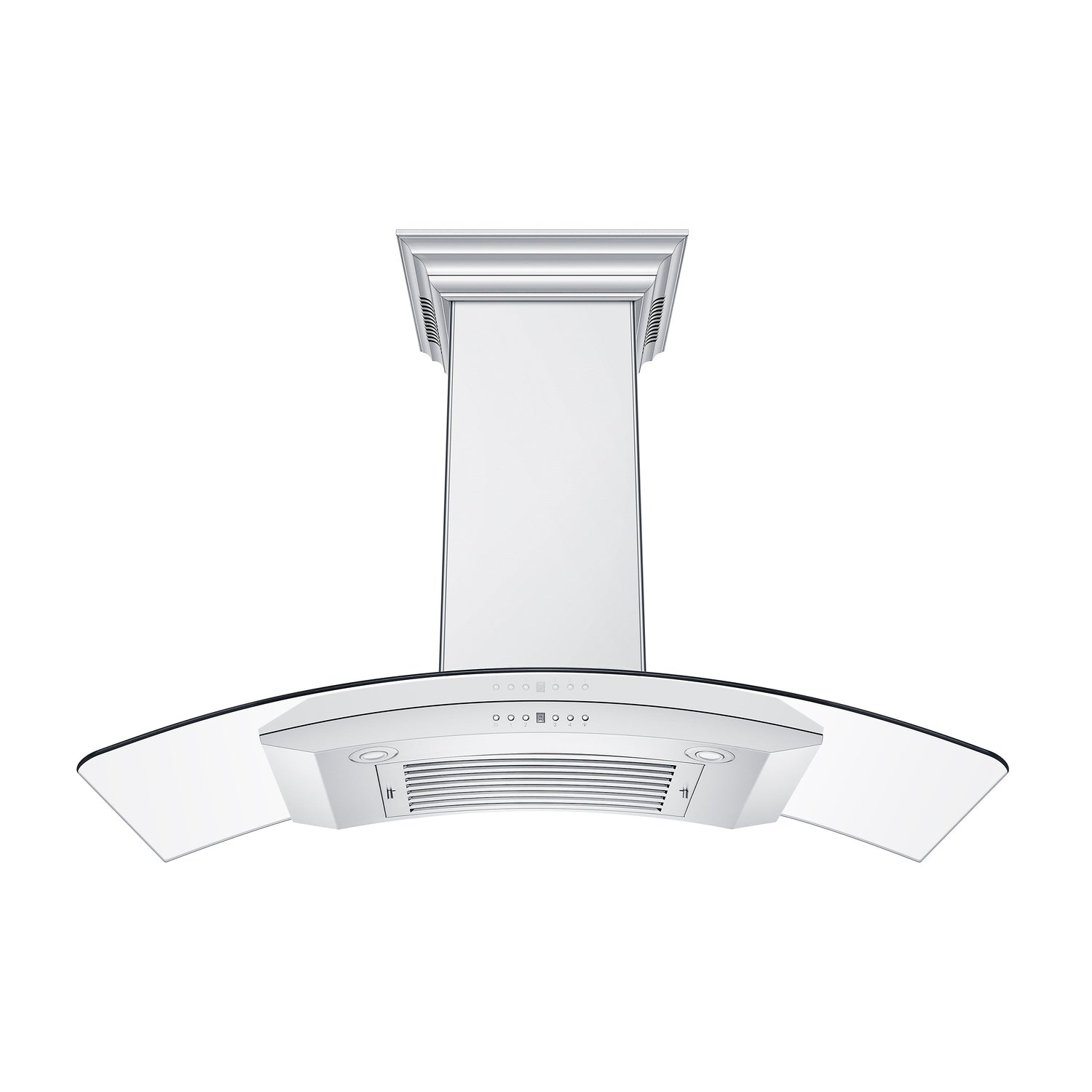 - Fixed vent with ductwork that easily connects to the top of the range hood for external venting